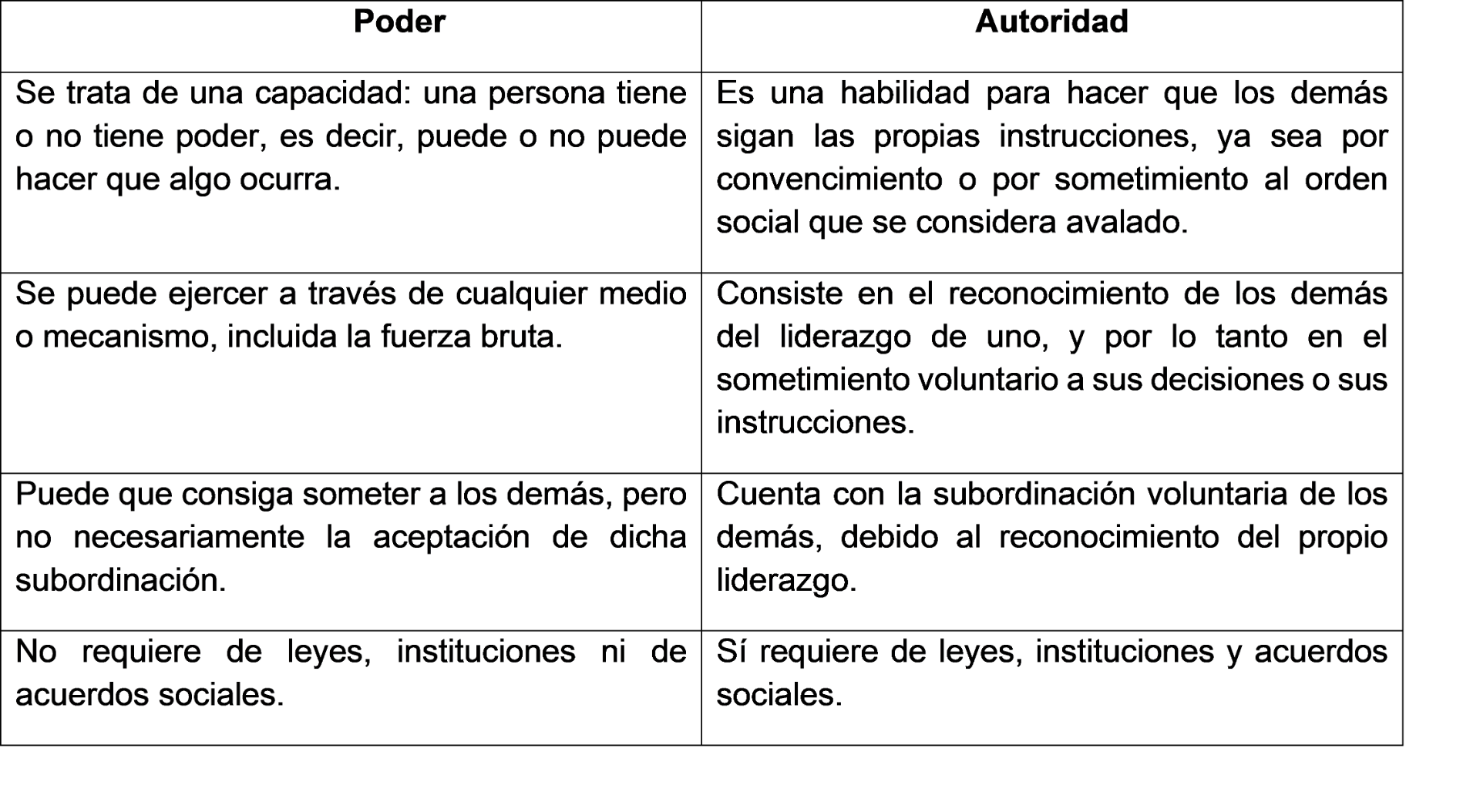 - la autoridad carismática, legitimada por las capacidades personales (carisma) del líder.
