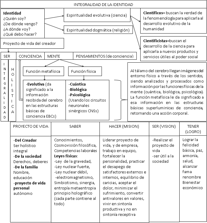 El universo es holístico, compuesto de una entidad metafísica y una entidad física formando un todo. La entidad metafísica es energía funcionando a velocidades superiores a la de la luz y representa el espíritu del universo que contiene la mente creadora y receptora del universo físico, el cual crea mediante una serie de códigos secuenciales ordenados en algoritmos formando el ADN universal, para ejecutar su desarrollo y evolución con leyes espirituales y físicas.