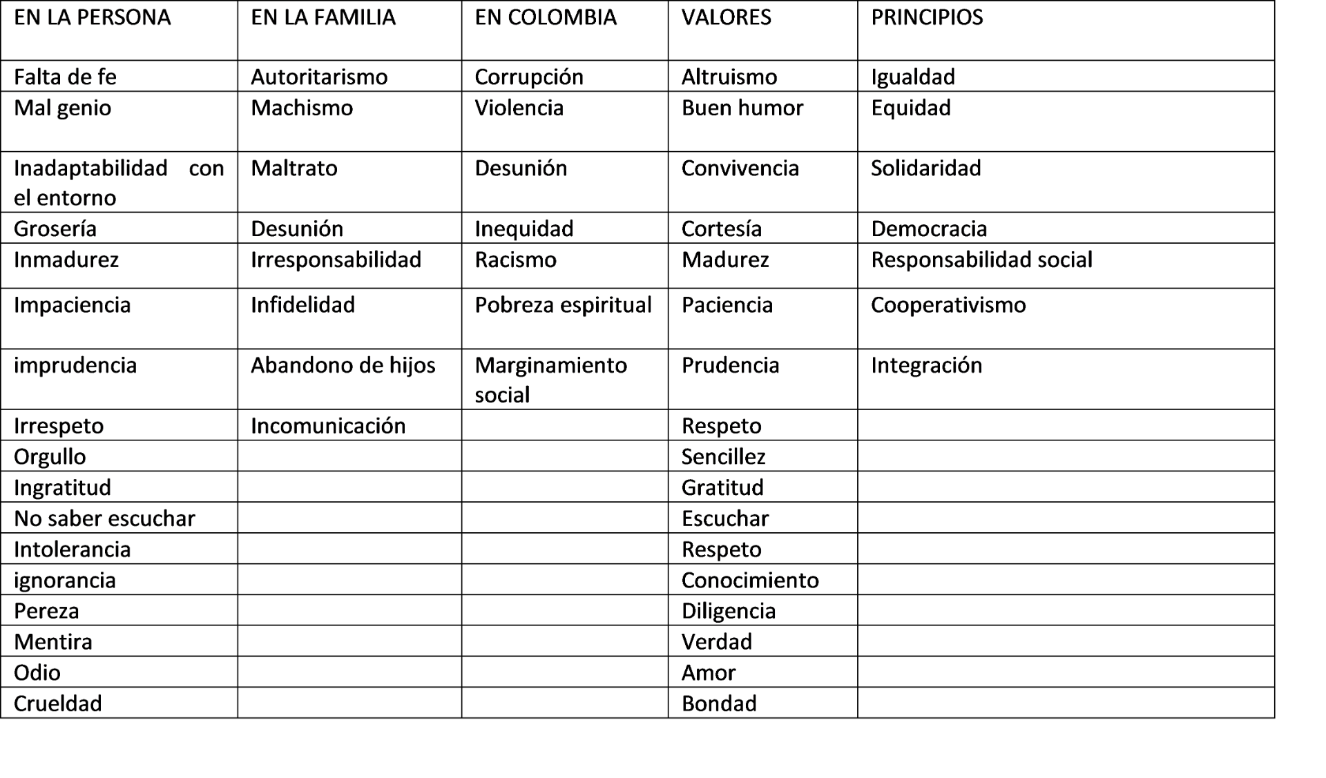 ANTIVALORES EN COLOMBIA, EN LA FAMILIA, EN LA PERSONA: